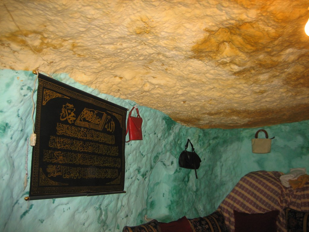 Since we had three full days in Fez, we had time to take a side trip to Bahalil to see the houses built in the caves into the mountains.  Our guide made arrangements for us to visit one of the houses.  It was a one-room cave with a small extension out of the mountain for the kitchen.  Our hostess invited us to drink tea with her and through our guide told her a bit about her life.  She is a widow, living with a grown- up daughter.  They make buttons from silk threads to sell.  She insisted I take a couple of buttons home with me.  They do have electricity and water.  The inhabitants of Bahalil are Berber, many of whom are descended from the Romans and therefore have blue eyes and light brown hair.  Again, being on a solo trip with a guide allowed us to dig deeper into the culture.