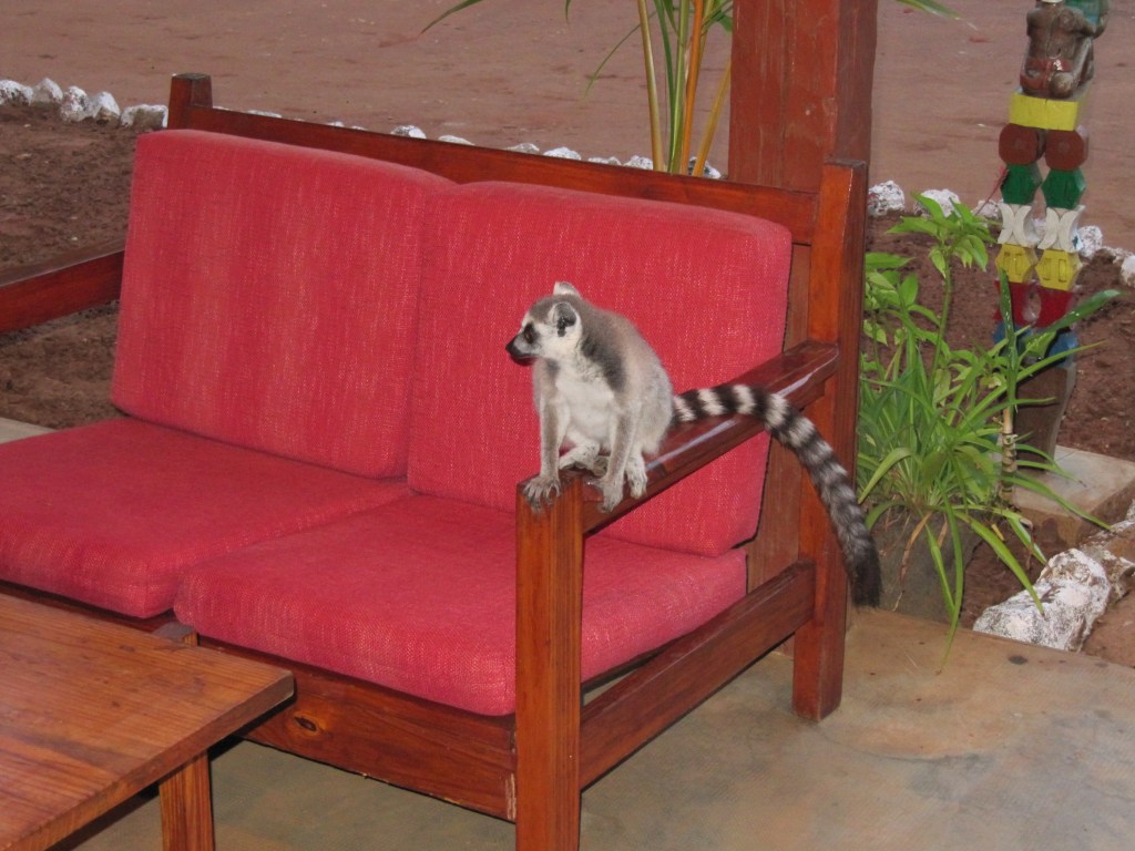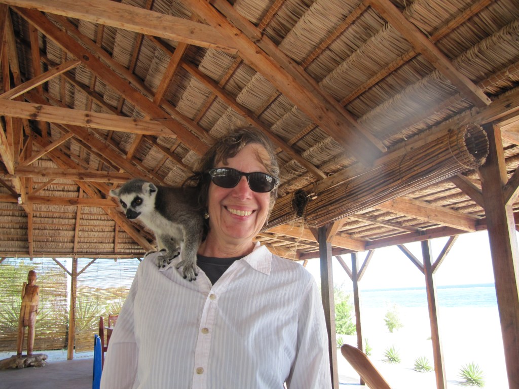 The staff at the resort had adopted an orphan ring-tailed lemur, Tobi.  He was still very young and had the run of the place.  We had to ask that he be kept away at meal times, (otherwise he stole food from our hands).