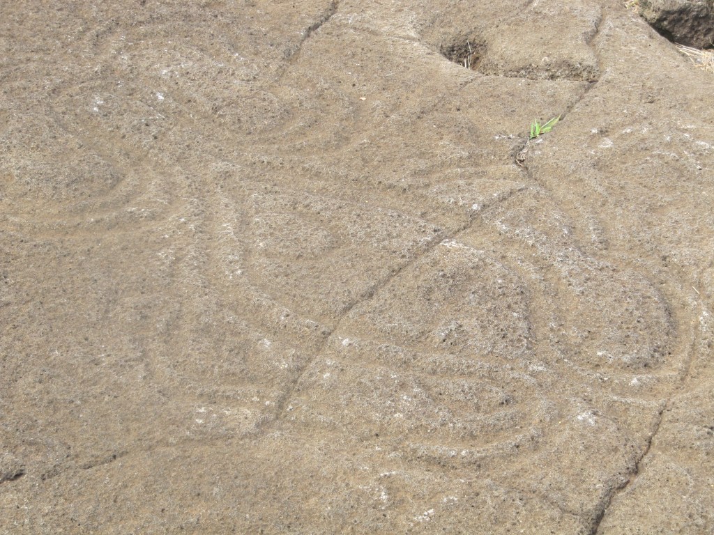 Also of interest are the petroglyphs at Papa Vak. The Easter Islanders did have a pictorial language; however, it has not been deciphered. I presume there are just not enough samples. Unfortunately, the petroglyphs have not weathered well and were very hard to see. We were able to recognize fishhooks, a tuna fish and a turtle (with Ramon’s help).