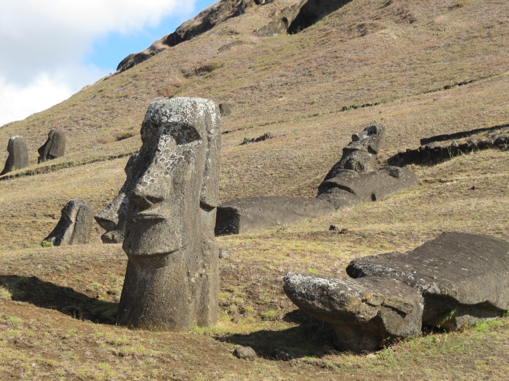 One thing that I wanted to call to your attention. It is no longer believed that there was cannibalism on the island. Apparently the myth began when the artist on one of the early explorer ships drew a picture of the Rapa Nui people looking beast-like and gnawing on bones with skeleton heads scattered around. Recent archeologists found some rat teeth marks on bones but nothing that indicated humans eating humans.