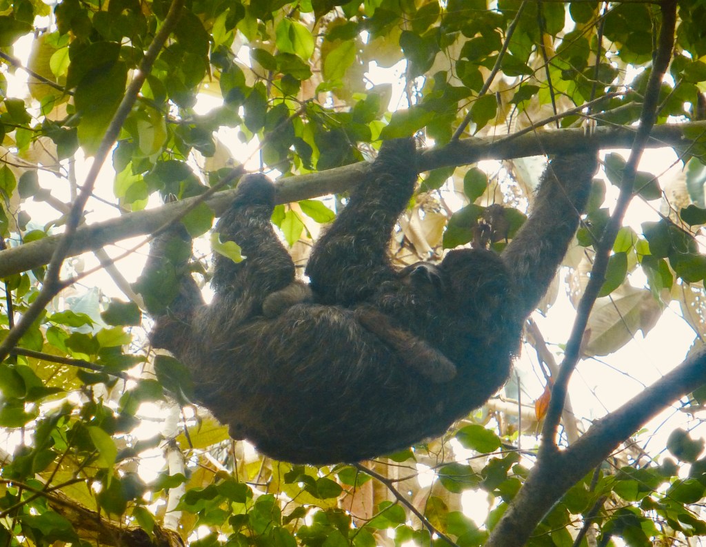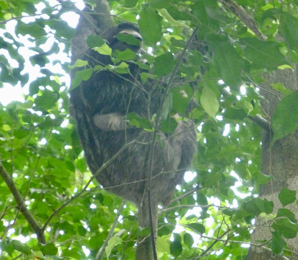 But the most exciting was a 3-toed sloth with a baby on her stomach. The sloth was only about 20 feet above us consequently we could see it really well. As we watched, it started to move and I took some videos. Watching the sloth move was like watching a ballet.