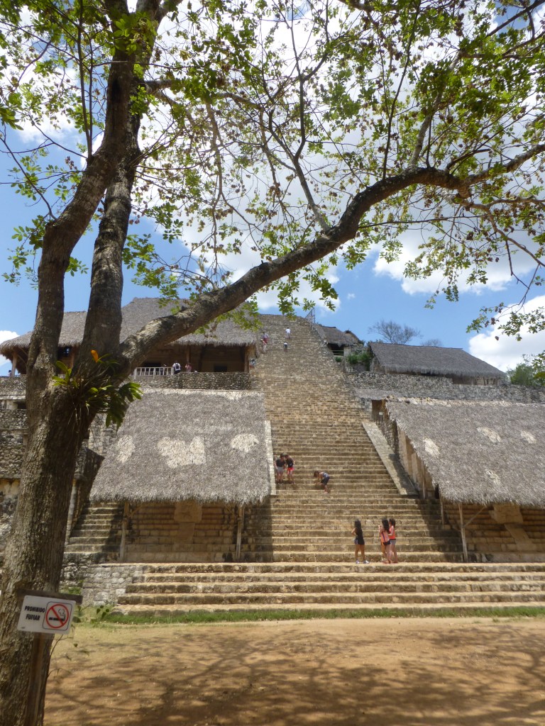 Here, unlike Chichen Itza, we could climb the structures in order to see the fabulous carvings. However, climbing the pyramid was a bit scary because the steps are very narrow. I saw some tourists come down the steps on their behind. I walked diagonally.