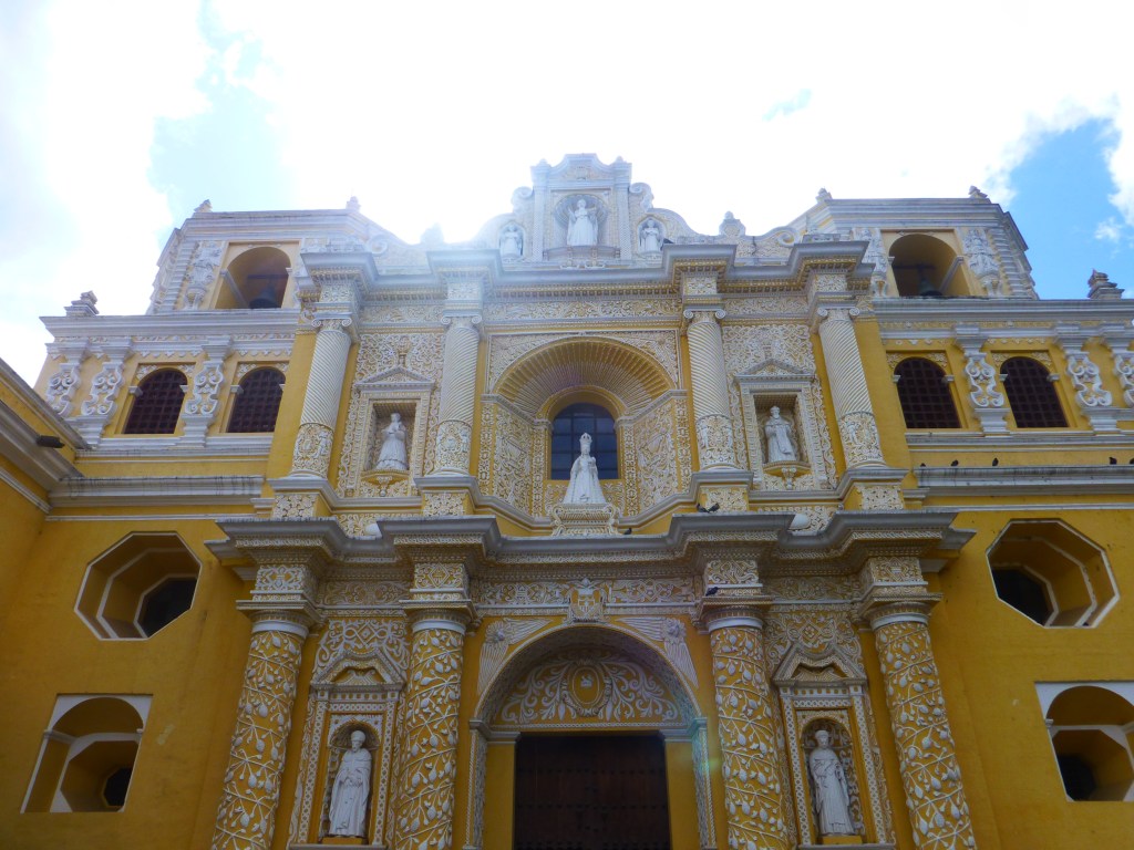 The beautiful Merced Church, originally built in 1548, was remodeled in 1767 to withstand earthquakes. It survived. It is a lovely Baroque style church with stucco/plaster decorations. The designs are a mix of Mayan and Catholic symbols.