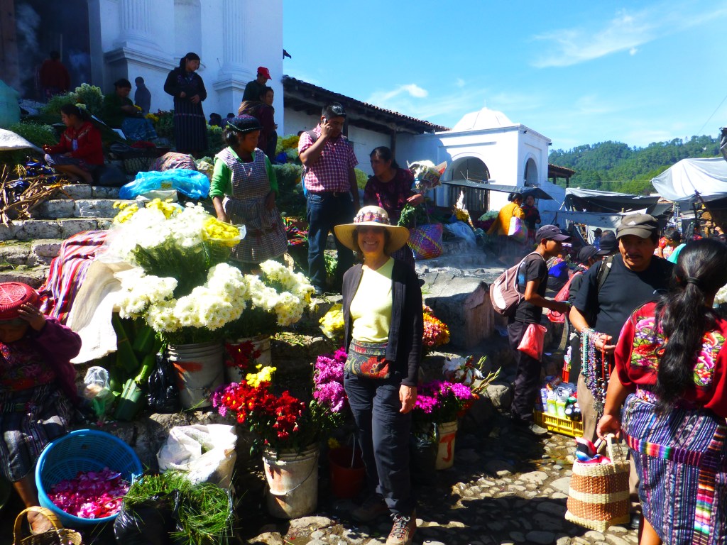Chichicastenango’s attraction is the market. Twice a week, merchants and buyers from near and far villages come to buy and sell. They walk or pile into the back of pick-up trucks with fresh food, live chickens and textiles. The market is fascinating not only for the variety of items for sale, but for seeing the indigenous Mayans. The women and some of the men wore their native Mayan dress, which changes by locale. Mayans make up at least 70% of Guatemala’s population.
