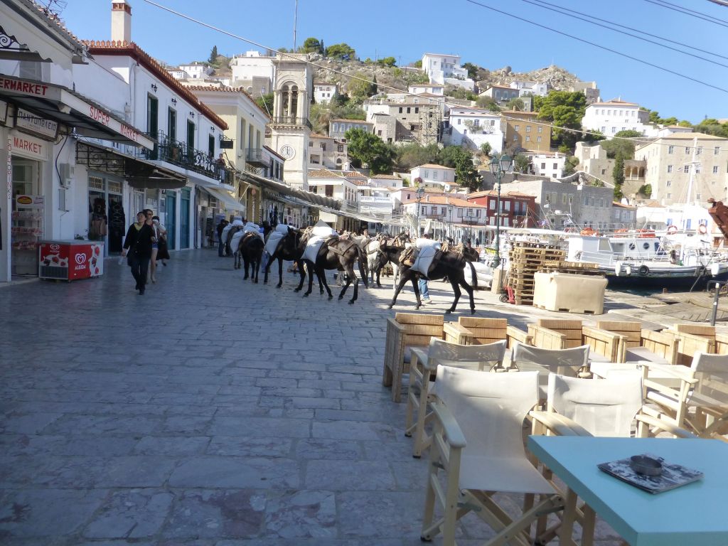 Hydra was my favorite island – it is an enchanted place. The approach to the port, was extremely picturesque. The tiny port was busy with a freight boat being unloaded on the backs of donkeys. Donkeys are a must because this small rocky island does not seem to have any roads. We visited the fort, watched port activity, and walked along the quay. The allotted hour was spent very pleasantly in the sunny morning. The other two islands were lovely but did not compare to Hydra and therefore omitted from this narrative.