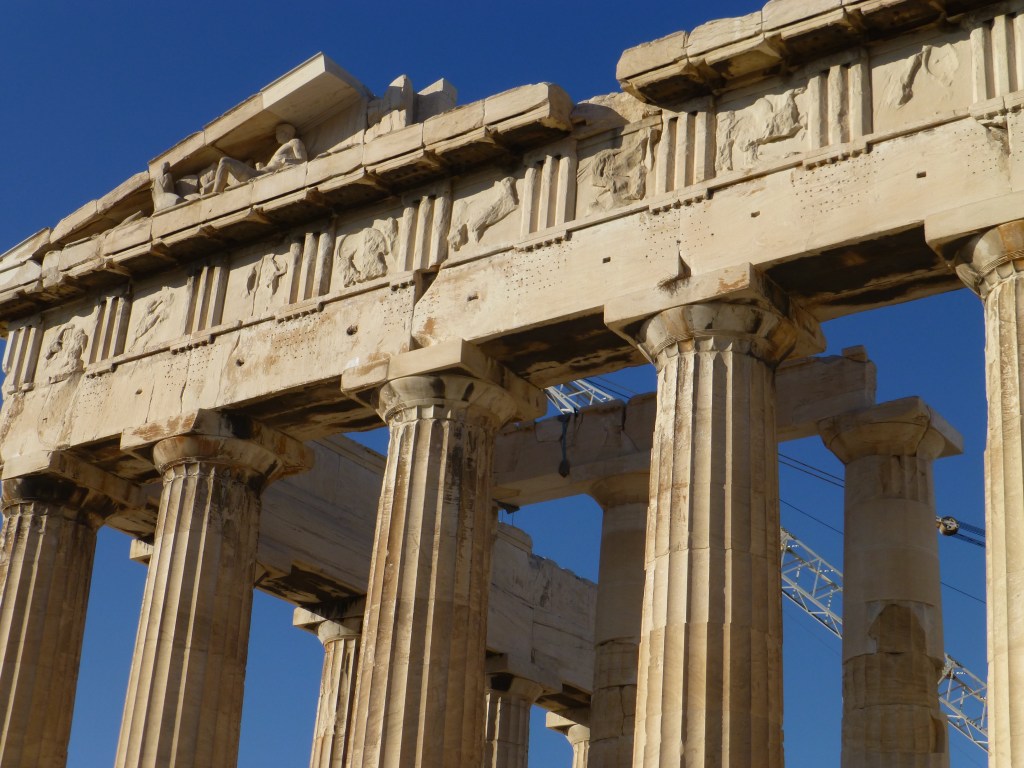 Because it was less important, it was left alone. It did convert to a church when the Christians came but unlike the Parthenon, it was never a mosque. Because it had been left alone, there were still some reliefs on its parapet.