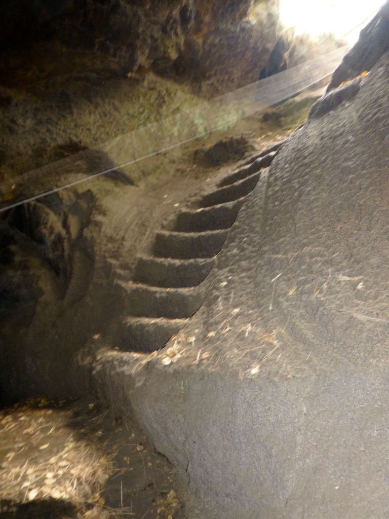 Going down into the lava tube was a bit treacherous because the steps were uneven and it was dark. The drivers helped by stretching a rope between them to use as a railing and by holding lights for us. Being inside the cave (lava tube) was awesome.