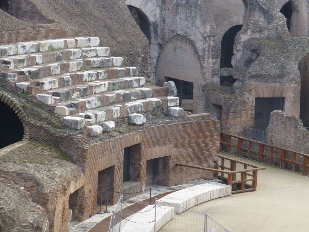 It is amazing. About 1/3 of the original actually remains and that 1/3 is unbelievable. Much of the marble and decorations were chiseled off to be incorporated into churches, therefore, the brick work looks like it has been bombed. There is a bit of marble left where the seats of the VIPs were. We could see the arches where gladiators entered and the “dead” door where they exited when defeated. We could see the rooms below where the animals were kept, and the various levels where people from different status sat.