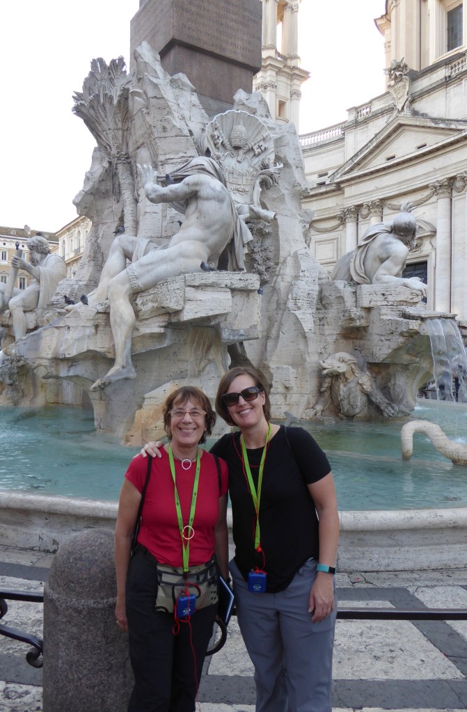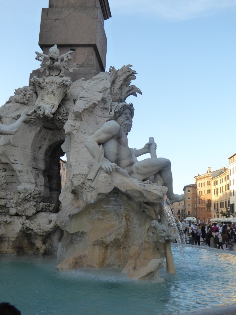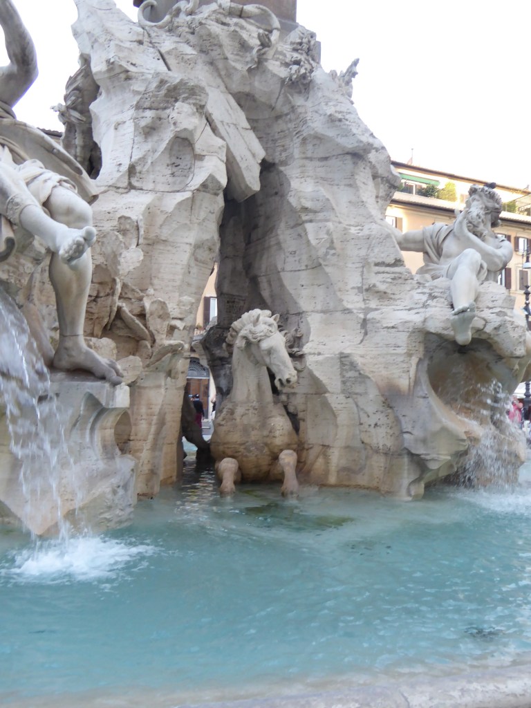 Rome was covered thoroughly in post #30, but there are a few gems that I saw or learned on this visit. After going to the Borghese Gallery on my previous visit, I was on the lookout for Bernini’s sculptures (1598 to 1680). I absolutely love his work such as St. Peter’s square, the angel sculptures on the Bridge of Angels, and the Four River Fountain in the Piazza Navonne. Above are Maggie and I in front of the Four River Fountain and below are two more pictures of the fountain.