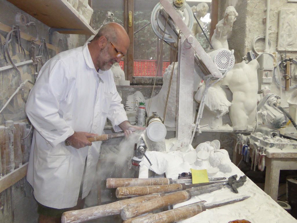 In the 1700s a free art school was established in Volterra, and to this day, there are many artisan shops in town. We went into an alabaster workshop and received a demo of making alabaster bowls using a lathe.