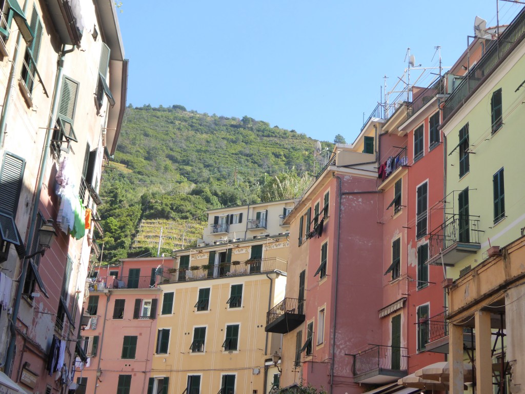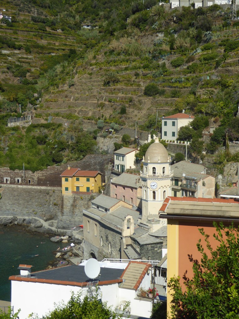 Vernazza was very crowded – we were warned that it would be in the middle of the day due to cruise ship passengers. But we loved looking at the buildings and the countryside. We found a relatively quiet spot and ate the sandwiches that we brought from the hotel and were very happy not to have to sit in a restaurant. We then climbed to the top of the Castle. There is no castle to visit, only the top is accessible for a spectacular view of the town.