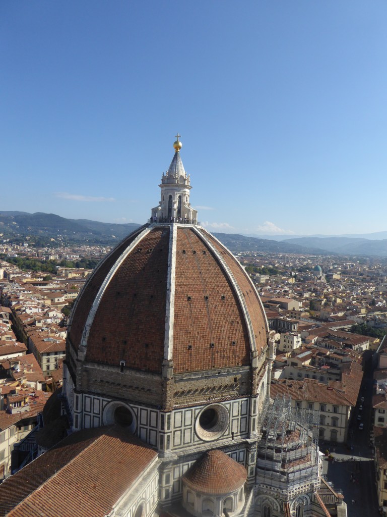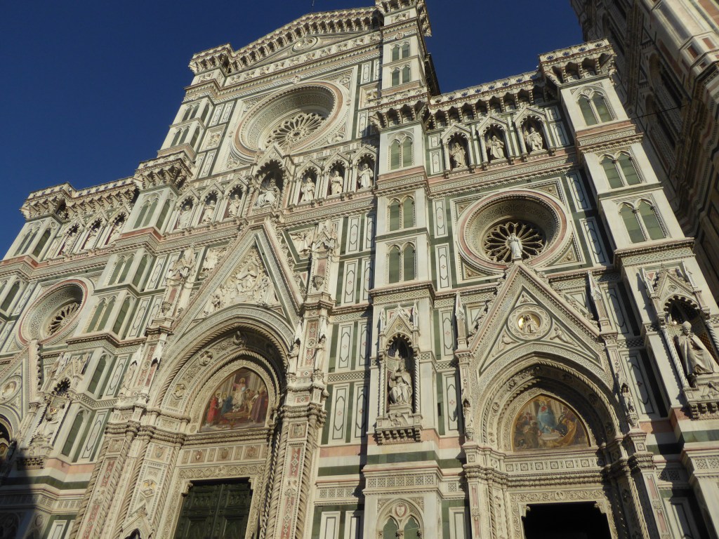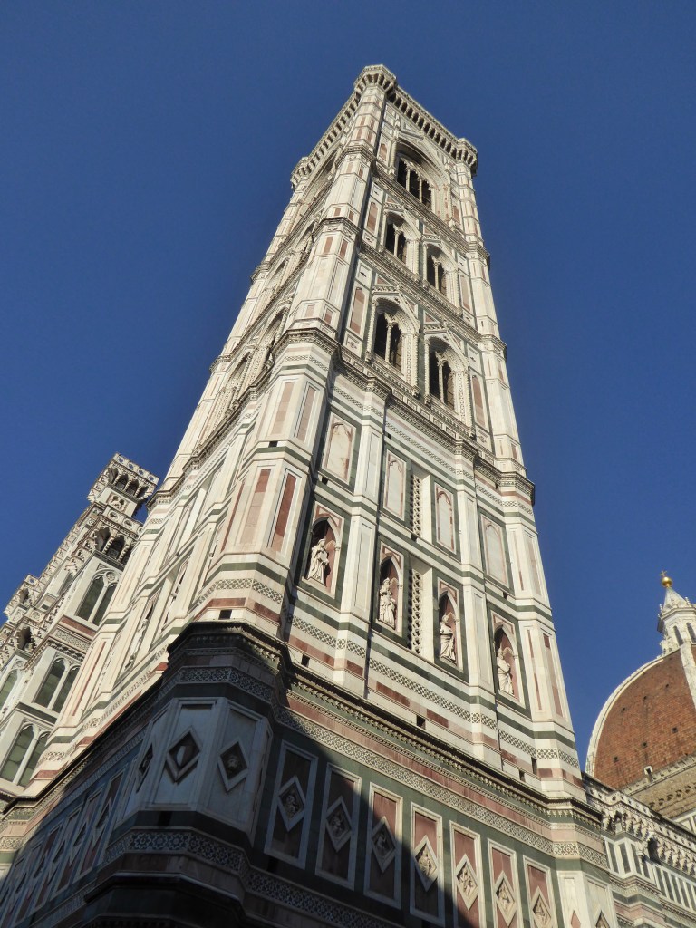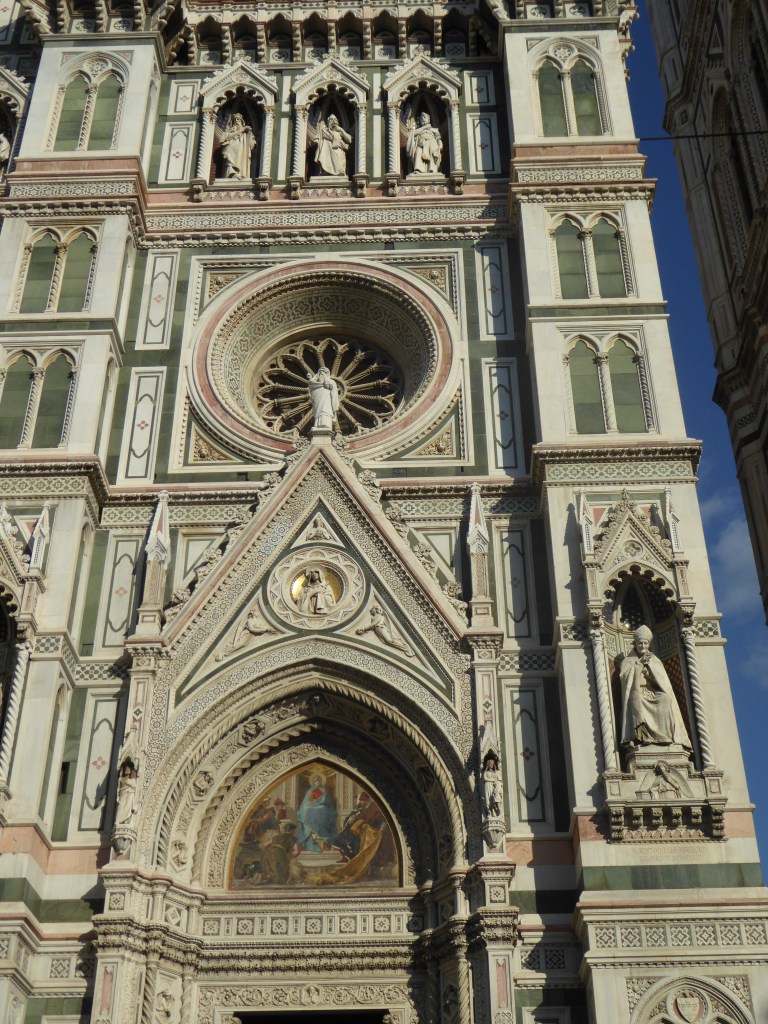The Duomo and the matching bell tower were definitely a wow!!. If you have not seen this cathedral, with the dome built by Brunelleschi from 1420 to 1436, honestly, just come to Florence to see them. They are magnificent. The Dome is an architectural wonder. Brunelleschi was a genius and invented many techniques. The dome pre-dates St. Peter’s in Rome. The exterior, from the 19th C, is made up of multicolored marble.