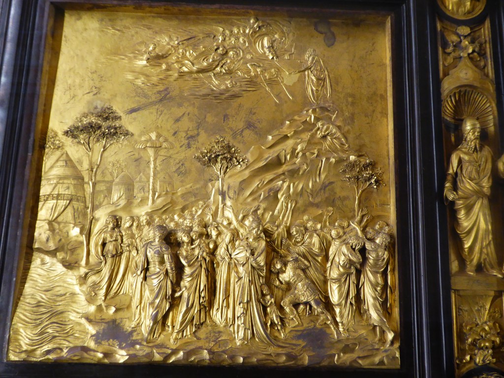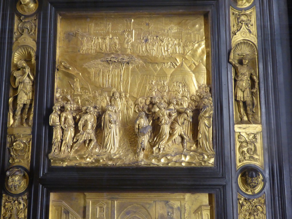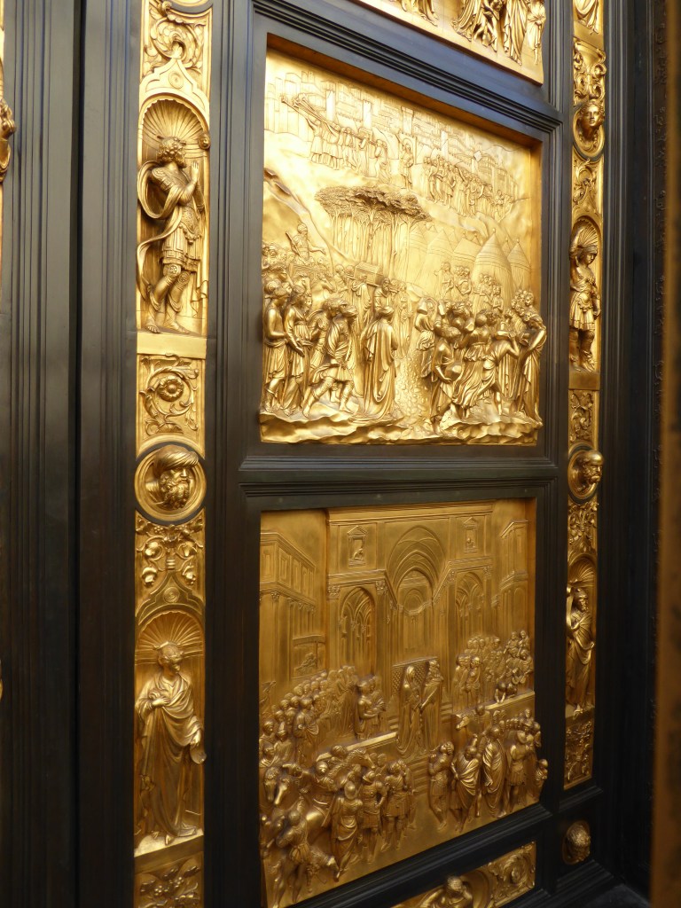 Across from the church, is the Baptistery. The original copper doors are in the Duomo Museum in order to preserve them. Replicas were put in the Baptistery. The replicas are amazing glinting in the sun. We also visited the originals in the museum and again were awed.