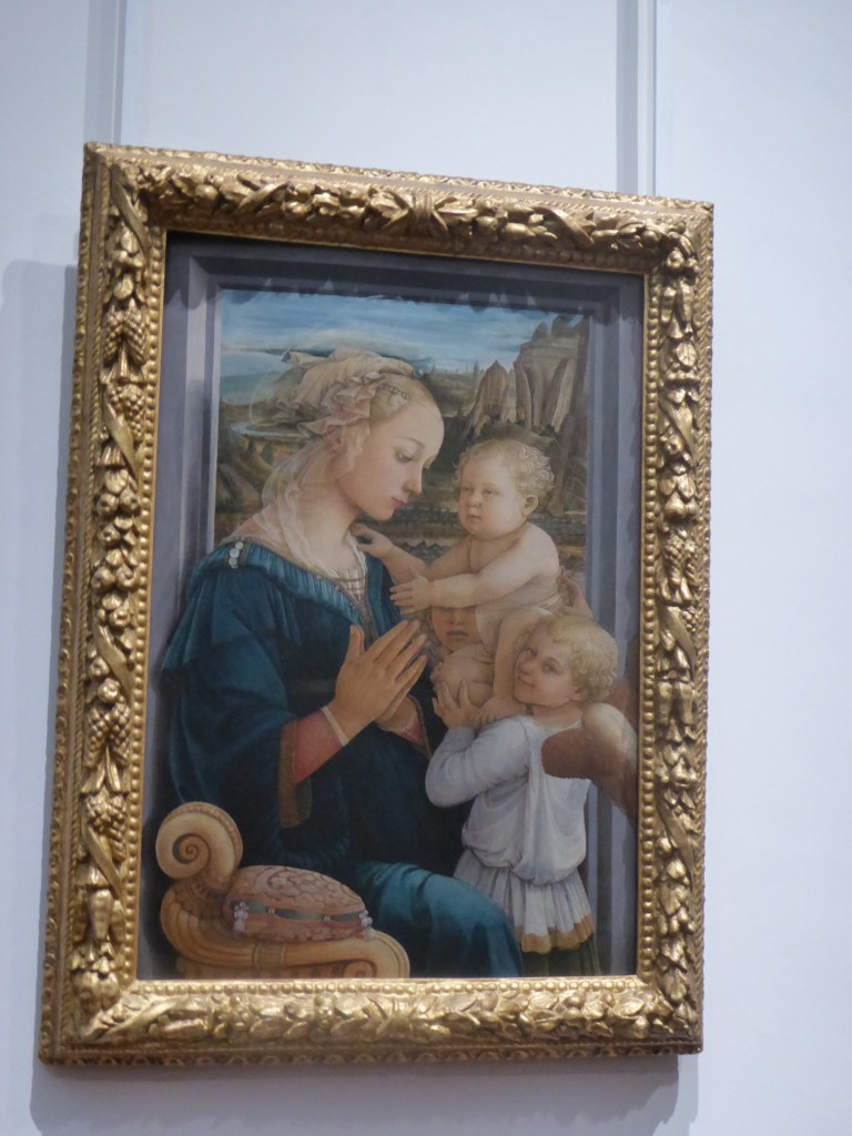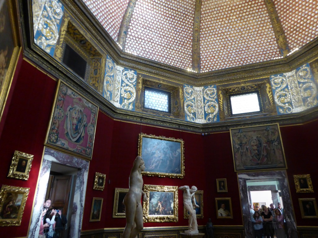 We visited the Uffizi galleries with a guide. She took us though it in chronological order starting with some Medieval paintings, which were all of religious subjects, with no prospective and unrealistic features. Giotto’s art began to be more realistic. Then we saw Botticelli’s Birth of Venice, DaVinci paintings, and ended with Rafael’s sweet painting of Mary gently touching Jesus and John the Baptist. The paintings were wonderful, but the rooms themselves were also fabulous.
