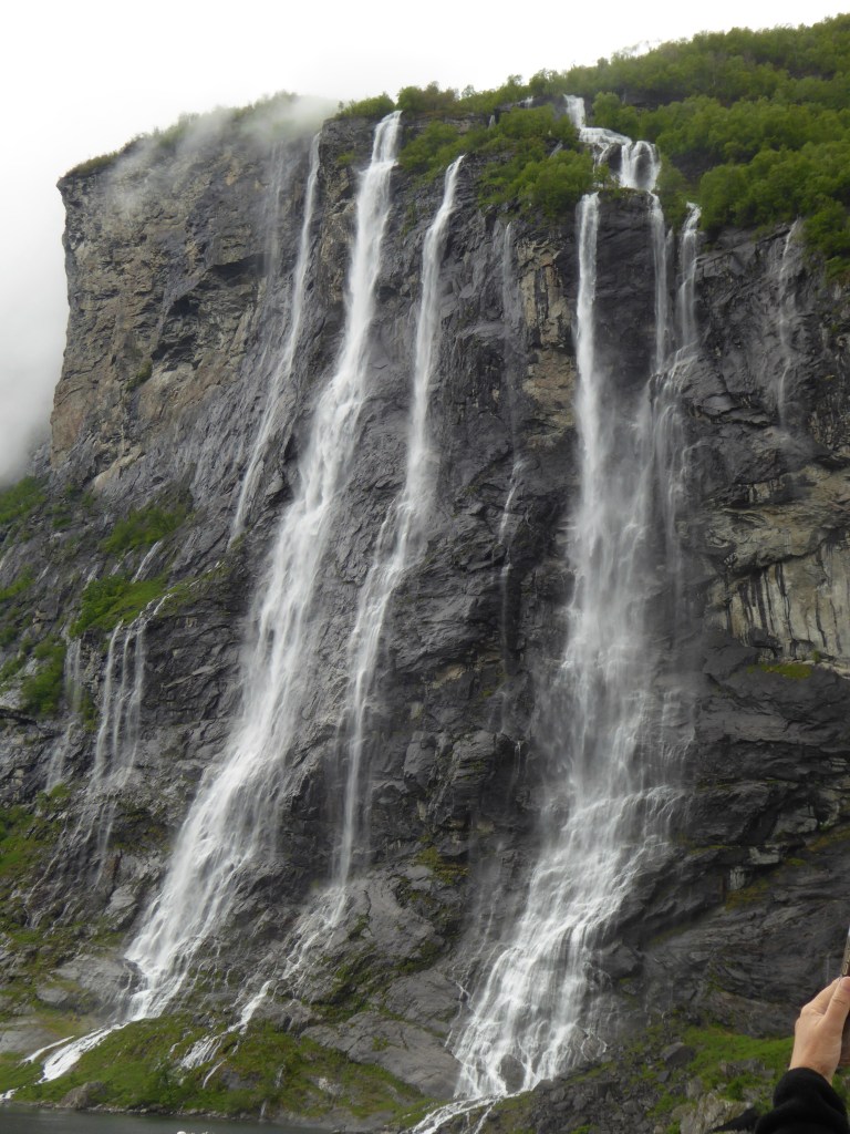 I was very excited to see my first Norwegian fjord. The boat went slowly through the fjord and in spite of the fog, it was an incredible sight. We passed by the beautiful “Seven Sister Waterfall.” I put on all my warm clothes to be able to be on deck to see it close up. The captain turned the boat 360 degrees so that everyone would have a chance to see the beauties we were passing. These mountains with their water falls were just wonderful.