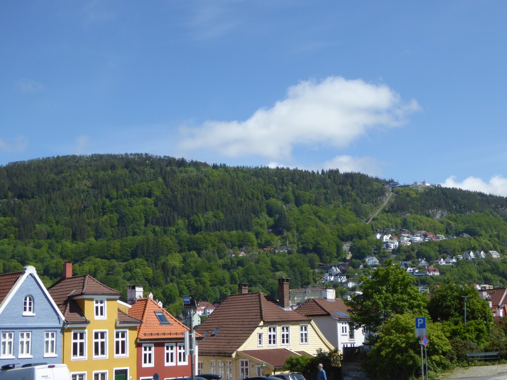 Bergen city center is lovely with beautiful and colorful houses. It has a very old fish market – maybe 200 years old, which was fun to walk through. Most of the town (outside of city center) is on the hillside, surrounded by majestic mountains. We took the funicular to the top of the mountain, for the awesome view. There is a forest walk at the top, but we decided that we wanted to spend our time and energy on walking the town rather than the forest, and took the funicular back down. There was an option to walk down, but with only one day here, we did not do it.