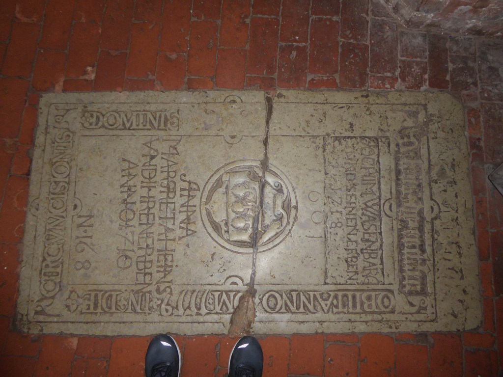 On the floor were crypts from the late 15th century and early 16th century. The crypts have been walked on so much over the last 400 years that some of the writing has been worn off.