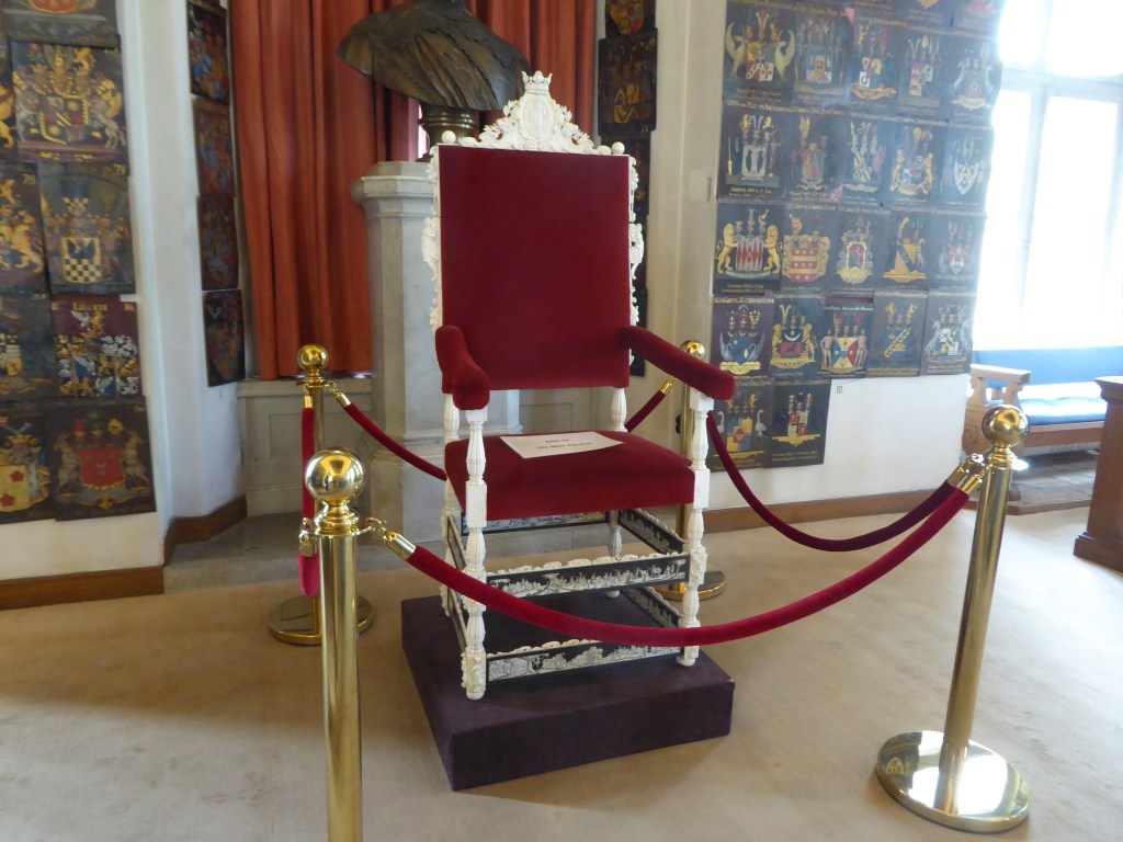 The walls have 2,331 coats of arms painted on copper plates. Beautiful painted ceiling from 1670 and the Lord Marshal’s chair are the other attractions. This chair was made in 1620 in Germany with carved ivory and ebony. It is fabulous.