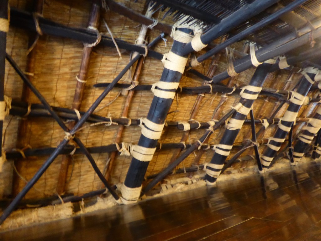 We were allowed to go up to the attic (very steep stairs) and from there we could see the thatching from the inside and the supports of the house. No nails were used in the building the houses. The thatching had to be tight to keep the house warm.