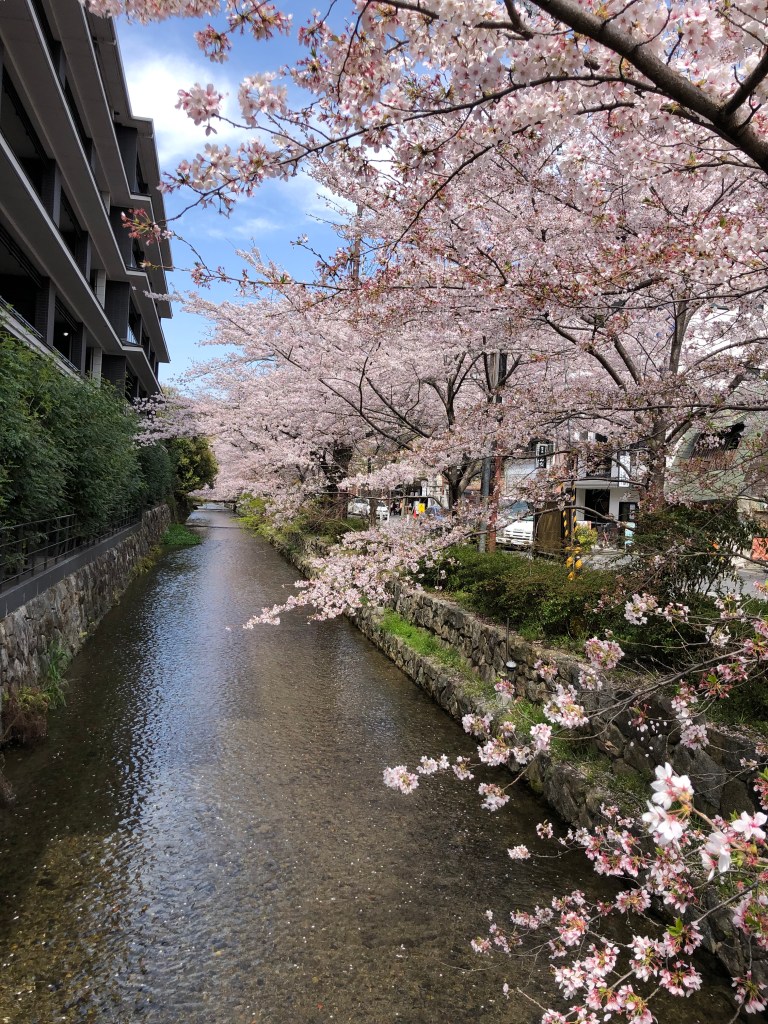 The cherry trees, which were past bloom in Tokyo and only coming out in the mountains, were in full bloom in Kyoto. Our walk along the river was magical!! We learned that all the cherry trees came from a single source in the late 19th century. These trees have a 50-year life and are re-planted from cuttings of the existing trees. That is why the color and shape of the trees are so similar and they make spectacular eye candy.