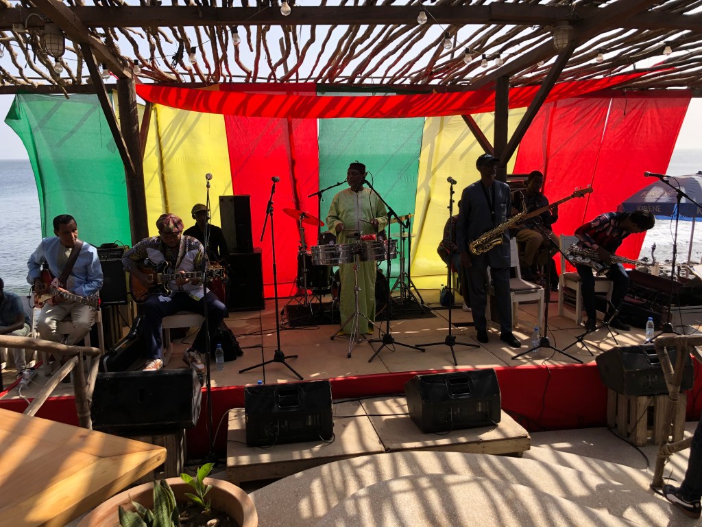 Hotel Royal is a lovely beach resort, only 20 minutes from the Dakar airport. Because of its proximity to the airport, it is very popular with French visitors. We only had one night at this resort – it was a fun way to be near the airport. In our short time, we enjoyed lunch on the beach and dinner around the pool, as well as a lovely sunset.