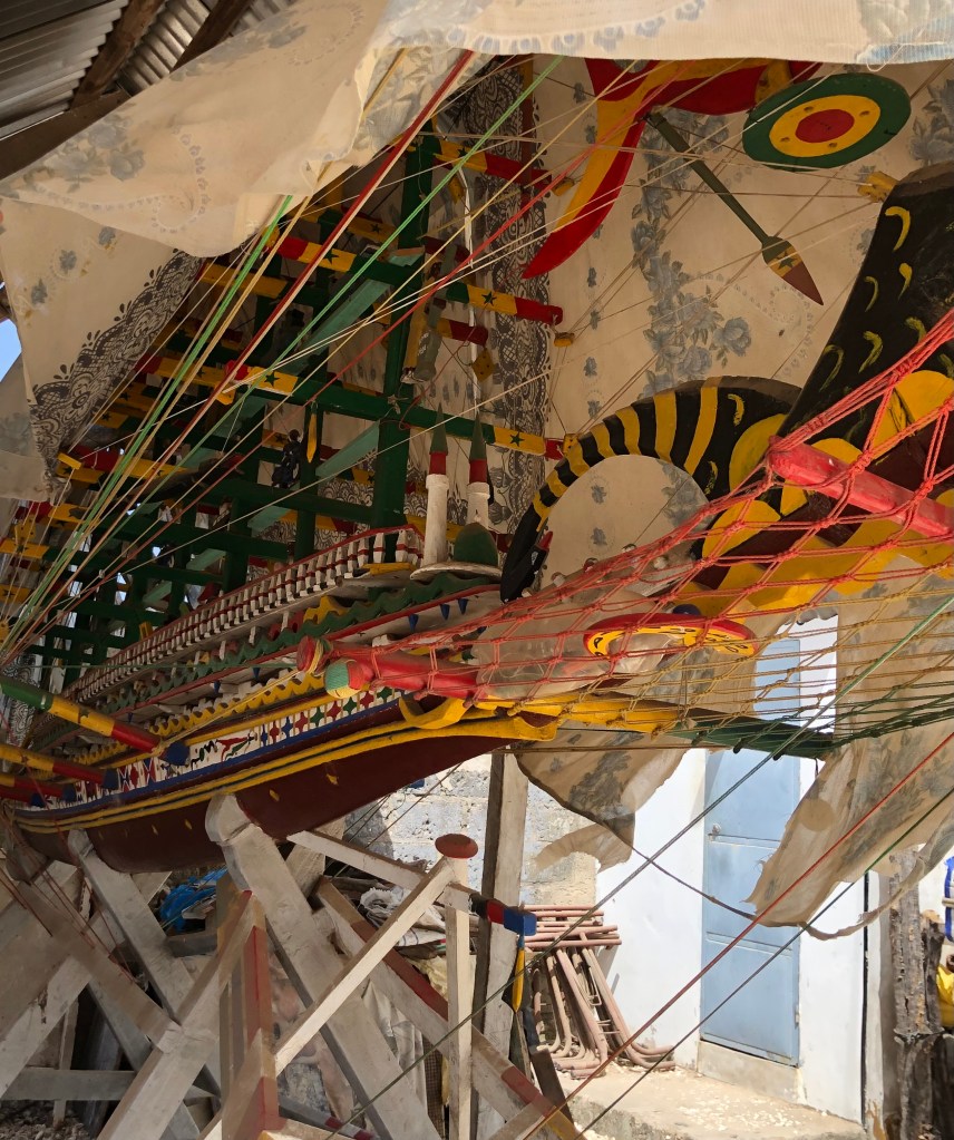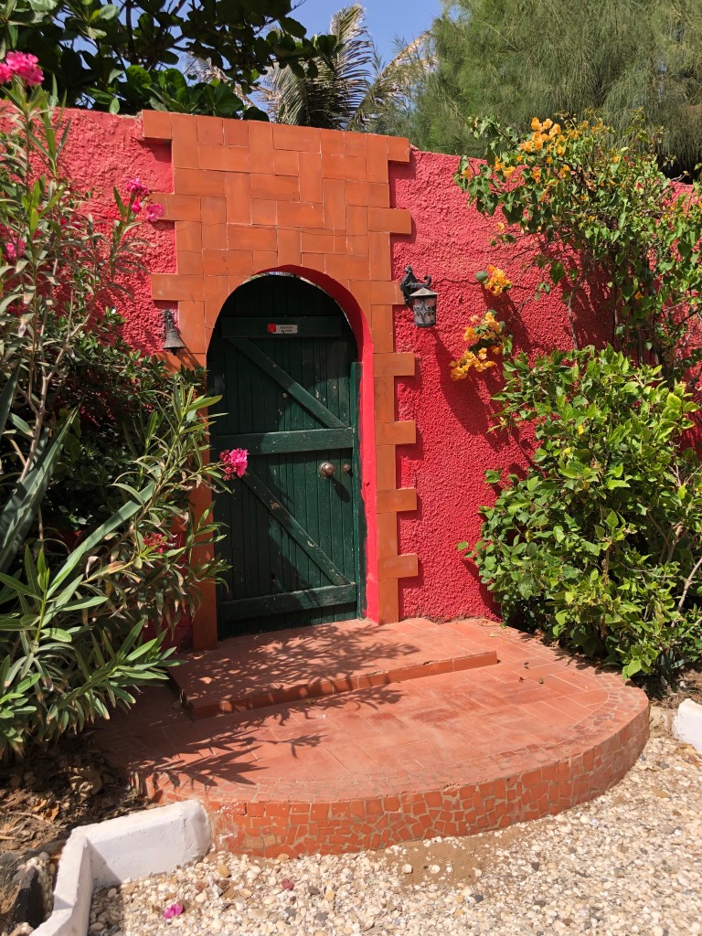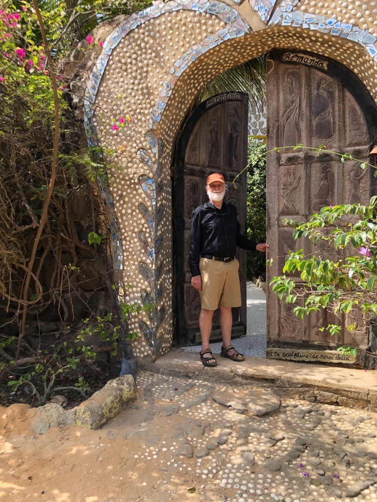 While in Dakar we went to visit the charming Ngor Island. To get there we took a small boat and had to wade in the water to get into the boat and wade again off the boat. In contrast to Dakar, which is a bit drab, this island had lots of colorful houses and hotels. We walked all over the island and were enchanted by the houses.