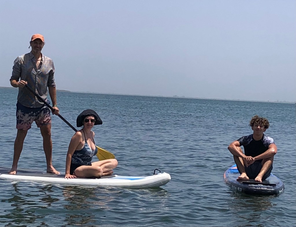 The Lobles paddled around in the water. Jules did head stands on the board. Jerry and I walked along the beach and relaxed.