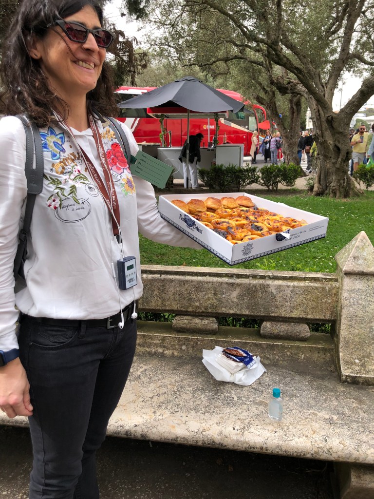 Claudia brought us a snack between visits, the Pasteis de Nata, the Lisbon specialty. It is a creme pastry. Supposedly this is an old monk recipe.