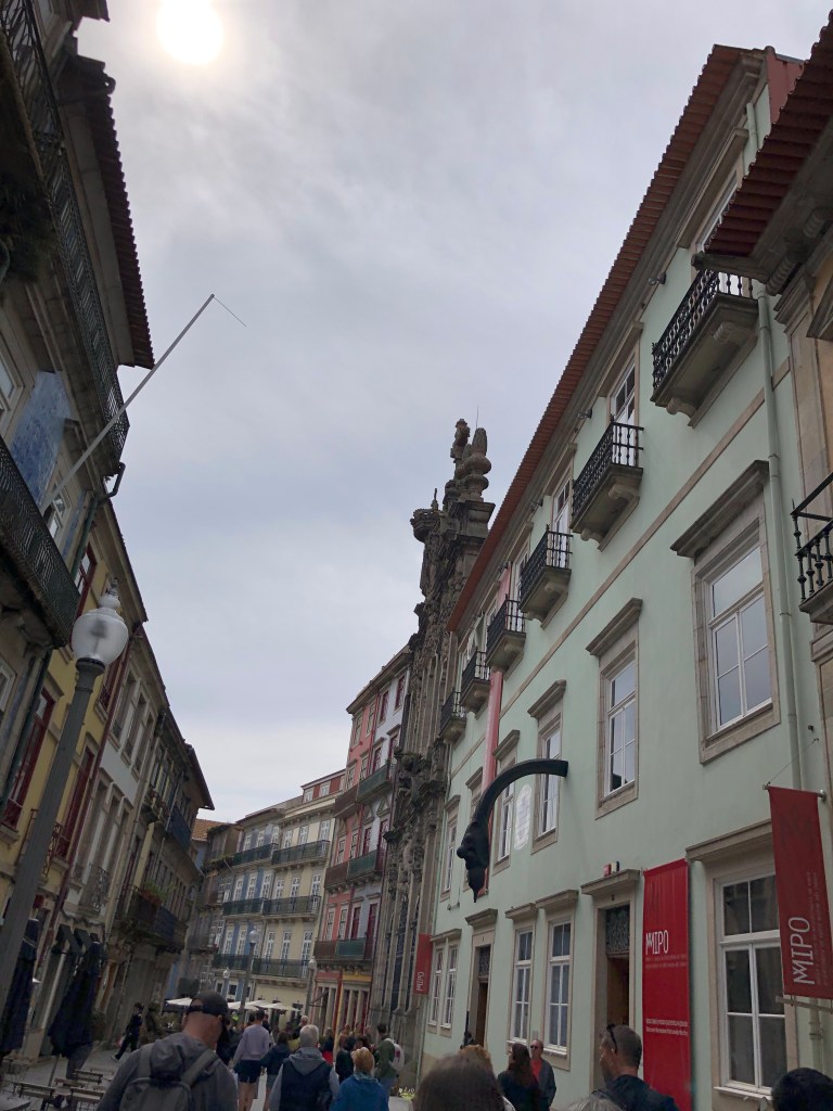 The weather that started balmy in Lisbon, turned cold and rainy. Luckily I was able to buy a jacket before the weather changed. In Porto, we, unfortunately had cold rain to cope with. On our walk, going down a narrow street, we could not enjoy the architecture. We had to watch our feet on the slippery stones.